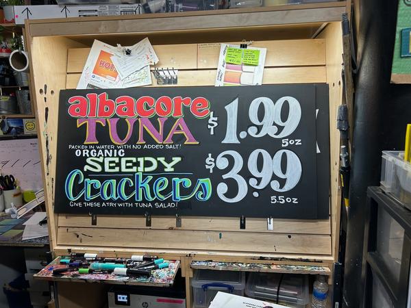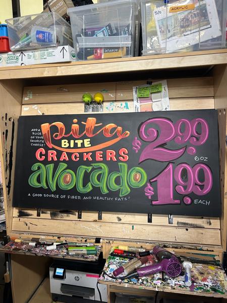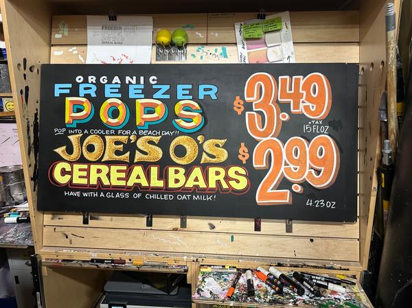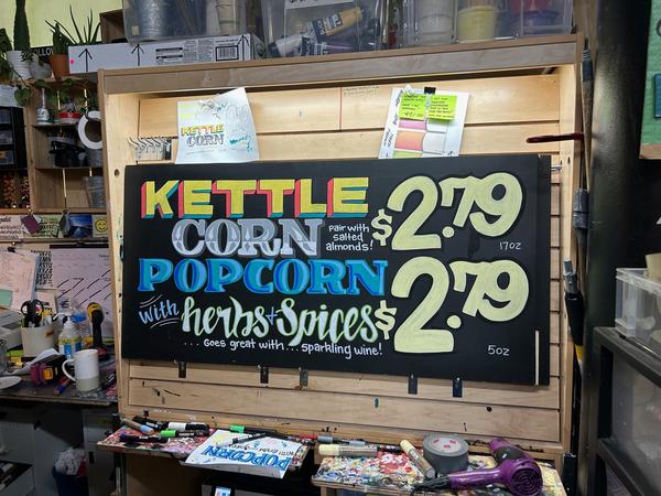 I do hand-painted signs with punchy advertising and visual design in mind. What I can do for you: create your next custom sign, slogan or visual marketing campaign!